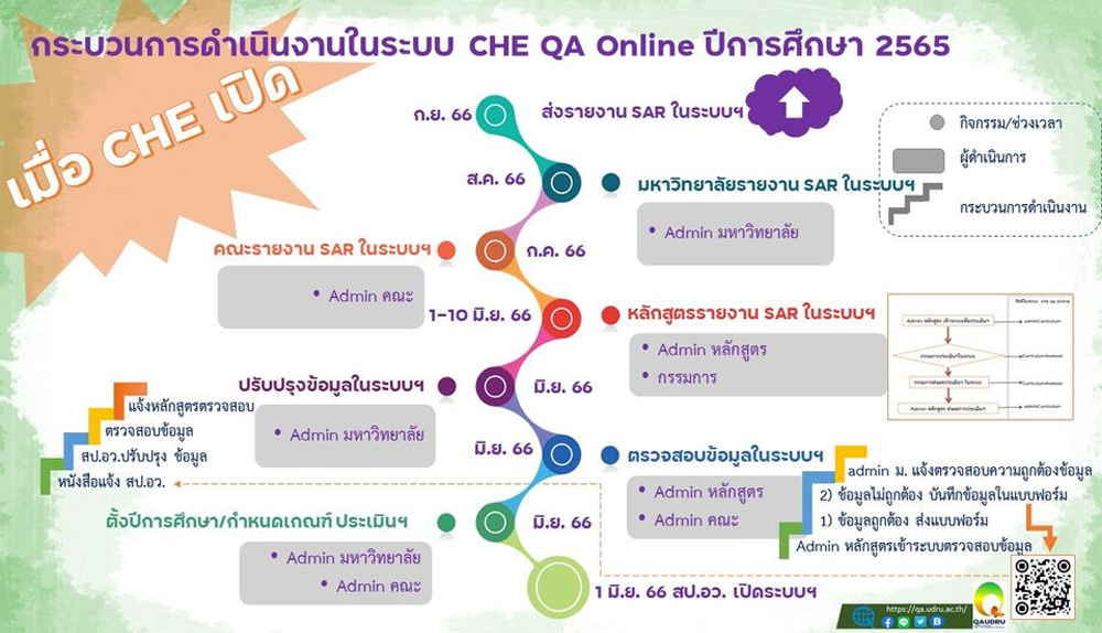 ระบบฐานข้อมูลด้านการประกันคุณภาพ (CHE QA Online) ปีการศึกษา 2565 สป.อว.แจ้งทาง Facebook จะเปิดระบบวันที่ 1 มิ.ย. 66 กระบวนการดำเนินงานในระบบฯ ต้องดำเนินการหลักๆ อะไรบ้าง