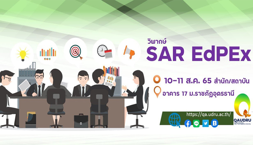 มหาวิทยาลัยราชภัฏอุดรธานี โดยงานประกันคุณภาพการศึกษา จัดโครงการอบรมเชิงปฏิบัติการ วิพากษ์รายงานประเมินตนเองตามเกณฑ์คุณภาพการศึกษาเพื่อการดำเนินงานที่เป็นเลิศ(EdPEx) ได้รับเกียรติจาก ผู้ช่วยศาสตราจารย์ ดร.กริซ แรงสูงเนิน จากคณะวิทยาการ มหาวิทยาลัยขอนแก่น เป็นวิทยากร โครงการดังกล่าวผู้เข้ารับการอบรมประกอบด้วยผู้บริหารระดับมหาวิทยาลัย ระดับคณะ ระดับสำนัก/สถาบัน และเจ้าหน้าที่งานประกันคุณภาพการศึกษา แบ่งเป็น 2 กลุ่ม ซึงได้จัดกลุ่มที่ 1 ไปแล้วเมื่อวันที่ 1-3 สิงหาคม 2565 สำหรับกลุ่มหน่วยงานระดับสำนัก/สถาบัน จะจัดขึ้นในวันที่ 10-11 สิงหาคม 2565 ณ ห้องประชุมอาคาร 17 มหาวิทยาลัยราชภัฏอุดรธานี