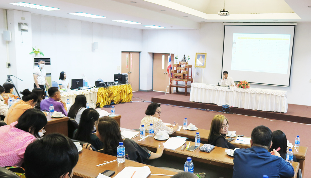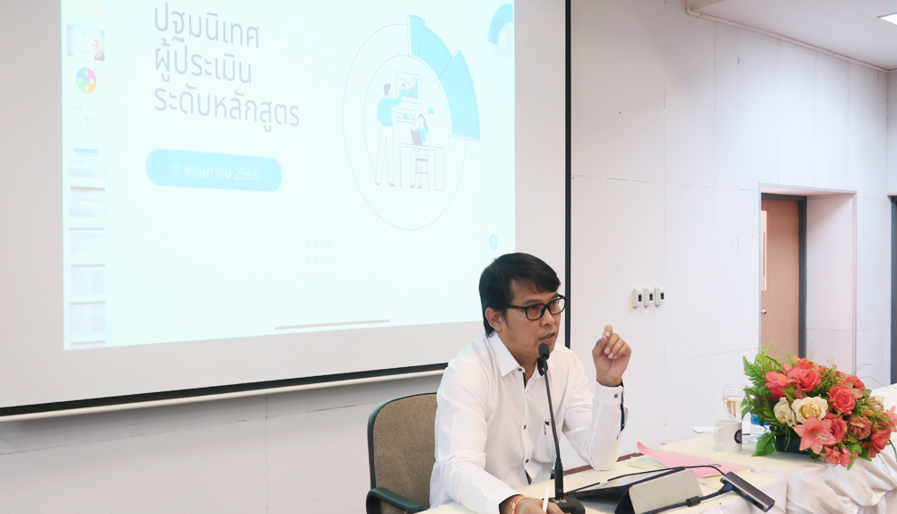 ผศ.ดร.ธีระยุทธ์ เพ็งชัย รองอธิการบดี บรรยายทบทวนเกณฑ์และประเด็นที่ผู้ประเมินจะเป็นประเด็นให้เกิดข้อสงสัยหรือเข้าใจไม่ตรงกัน ในการประเมินคุณภาพการศึกษาภายใน ระดับหลักสูตร ในมหาวิทยาลัย ต่อด้วยบทหน้าที่และความรับผิดชอบของคณะกรรมการประเมิน การเขียนข้อเสนอแนะ การจัดทำรายงานประเมินตนเอง และการตรวจประเมินในระบบฐานข้อมูลการประกันคุณภาพการศึกษา CHE QA Online.