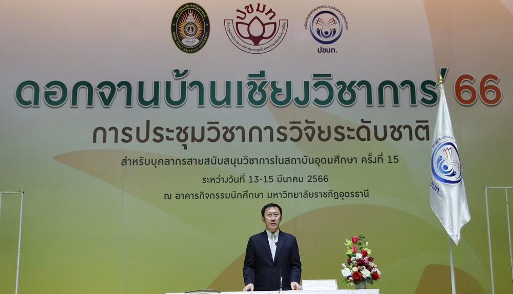 ดร.ดนุช ตันเทอดทิตย์ เลขานุการรัฐมนตรีว่าการกระทรวง อว. ประธานกล่าวเปิดโครงการ ดอกจานบ้านเชียงวิชาการ'66