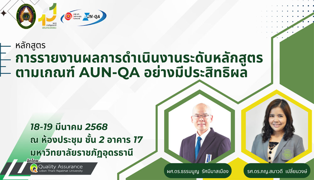ประกาศ รายชื่อบุคลากรที่เข้าร่วมอบรม AUN-QA for Programme Assessment Version 4.0 วันที่ 26-28 กุมภาพันธ์ 2568