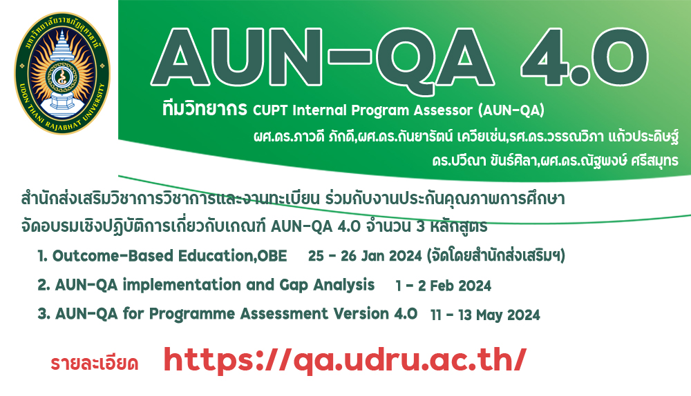 2) หลักสูตร “ผู้ประเมินคุณภาพการศึกษาภายใน ตามเกณฑ์ AUN-QA for Programme Assessment Version 4.0”