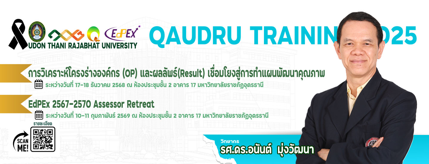 ดังนั้น เพื่อยกระดับผลการดำเนินงานและสร้างความเข้มแข็งของระบบการประกันคุณภาพการศึกษาภายใน งานประกันคุณภาพการศึกษา กองนโยบายและแผน สำนักงานอธิการบดี จึงกำหนดจัดอบรมให้ความรู้แบ่งเป็น 2 กิจกรรม คือ กิจกรรมที่ 1 "การวิเคราะห์โครงร่างองค์กร (OP) และผลลัพธ์ (Result) เชื่อมโยงสู่การทำแผนพัฒนาคุณภาพ" เพื่อให้ผู้บริหารและบุคลากรสามารถกำหนดทิศทาง วิเคราะห์ปัจจัยสำคัญขององค์กรได้อย่างแม่นยำ และเชื่อมโยงผลลัพธ์ที่เกิดขึ้นสู่การจัดทำแผนพัฒนาคุณภาพการศึกษา (Improvement Plan) ที่มีประสิทธิภาพและรูปธรรมอย่างแท้จริง กิจกรรมที่ 2 "EdPEx 2567-2570 Assessor Retreat" เพื่อพัฒนาศักยภาพของบุคลากรที่รับผิดชอบและบุคลากรที่เป็นผู้ประเมินคุณภาพการศึกษาภายในของมหาวิทยาลัยราชภัฏอุดรธานี โดยการทบทวนและทำความเข้าใจในเกณฑ์คุณภาพการศึกษาเพื่อความเป็นเลิศ (EdPEx) อย่างลึกซึ้ง เพื่อให้สามารถปฏิบัติหน้าที่ในการประเมินตนเองและการตรวจประเมินได้อย่างถูกต้องตามมาตรฐานและมีธรรมาภิบาล อันจะนำไปสู่การยกระดับคุณภาพของมหาวิทยาลัยฯ ให้เป็นไปตามมาตรฐานการอุดมศึกษาที่กำหนด