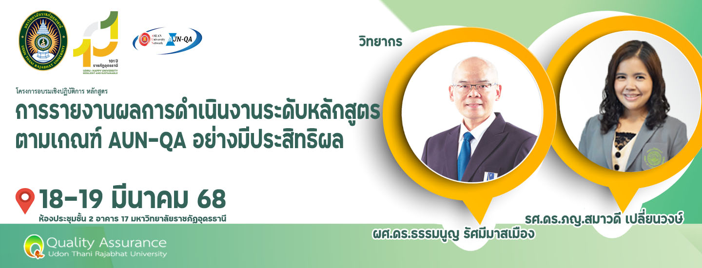ดังนั้น งานประกันคุณภาพการศึกษา กองนโยบายและแผน สำนักงานอธิการบดี จึงกำหนดจัดโครงการอบรมเชิงปฏิบัติการ หลักสูตร “การรายงานผลการดำเนินงานระดับหลักสูตรตามเกณฑ์ AUN-QAอย่างมีประสิทธิผล” สำหรับอาจารย์ผู้รับผิดชอบหลักสูตร โดยมีวัตถุประสงค์เพื่อให้ผู้เข้าร่วมอบรมมีความเข้าใจกรอบแนวคิดและสาระของเกณฑ์ AUN-QA Version 4.0 ไปพัฒนาและบริหารจัดการหลักสูตร สามารถวิเคราะห์ประเด็นที่ควรนำไปพัฒนาปรับปรุงการบริหารจัดการหลักสูตรโดยใช้แนวคิดจากเกณฑ์AUN-QA จัดทำแผนพัฒนาคุณภาพการศึกษานำไปสู่กระบวนการจัดการเรียนการสอนอย่างมีประสิทธิภาพสูงสุด
